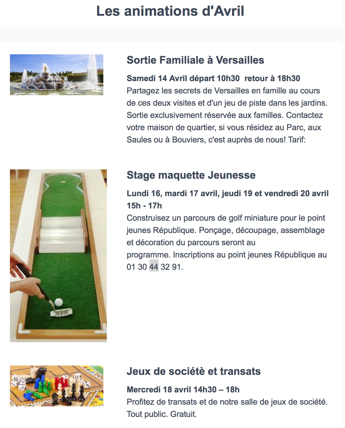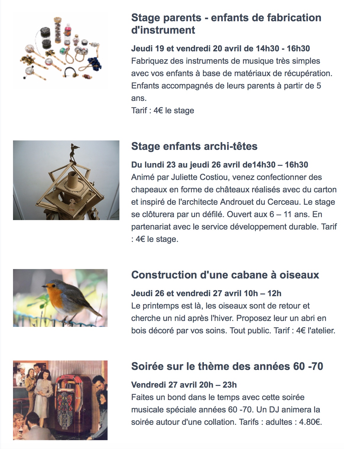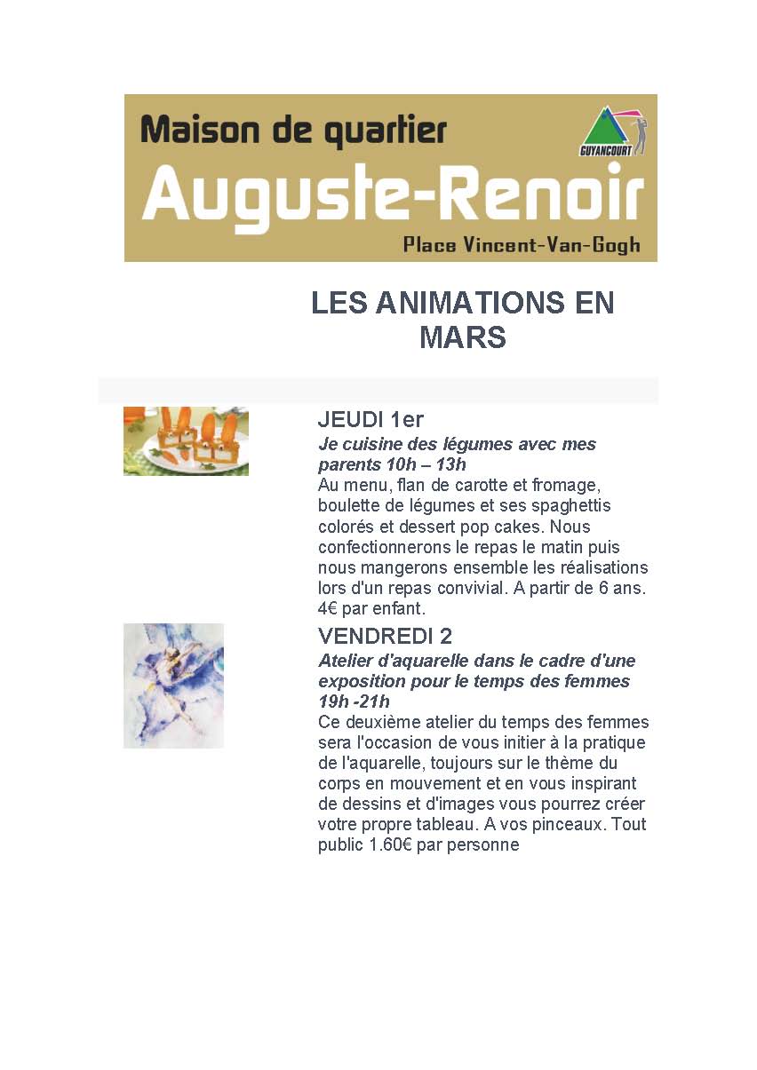 Activités Maison de quartier A.Renoir Renoir Avril 18 DéC 2017 0 Partager sur Twitter Partager sur Facebook Partager sur Google Articles liésNo related posts found.